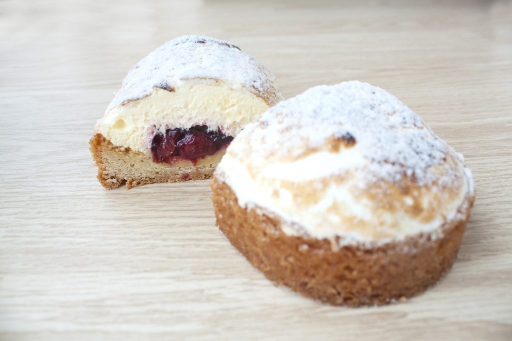 Stevige bodem gemaakt met echte roomboter gevuld met bakkersroom en kersen afgemaakt met de romige combinatie van slagroom en bakkersroom.